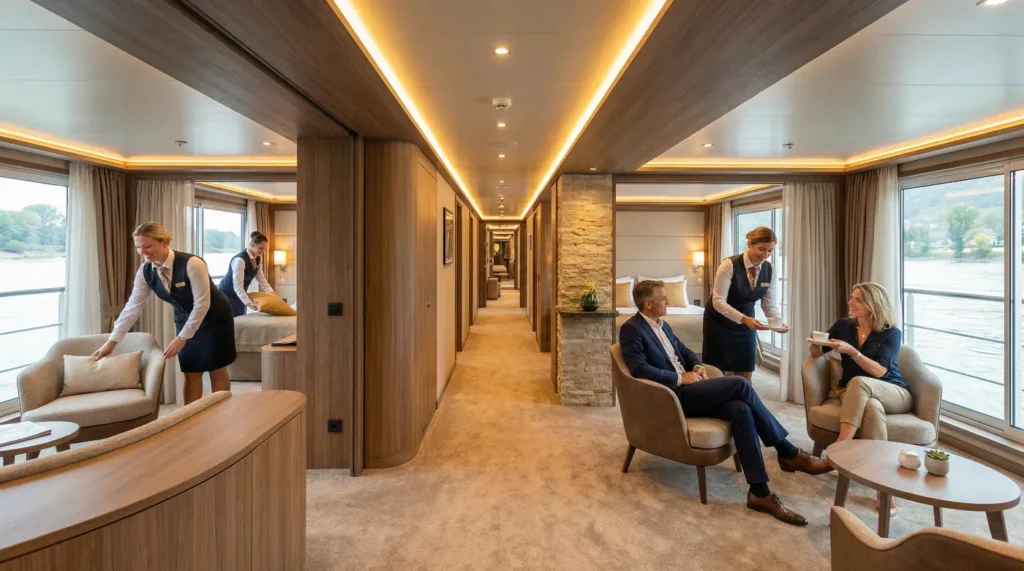 We deliver fully integrated hotel operations designed specifically for the unique demands of river cruise vessels. Our expertise spans multiple cruise concepts, ship classes, and luxury segments, allowing us to adapt seamlessly to different brand standards and guest profiles.